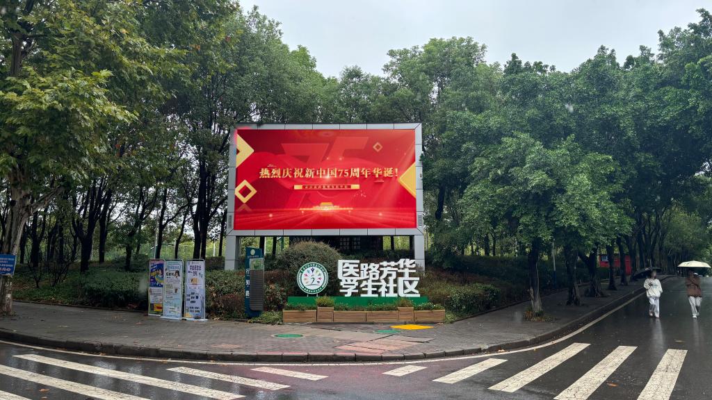 学校特别制作了98根灯杆道旗,校园里五星红旗随风飘扬,放眼望去,满眼尽是中国红。充分利用大屏幕、条屏等资源,循环播放庆祝新中国成立75周年的宣传标语及主题视频,展示学校与新中国共成长的校史故事,激发师生的爱国热情。组宣部策划拍摄了“与新中国共成长 与学校共成长”的采访节目,近期也陆续播出,节目共采访了15名老师,他们用自己的亲身经历和感受,讲述了新中国成立75周年的深刻变化,分享了自己与学校共同成长的故事,这些真实的故事和感受,让师生们深受感动。各院部师生也自发地拍摄了祝福视频,大家借助镜头,用真挚的话语和温馨的画面,表达了对新中国75周年华诞的美好祝愿。