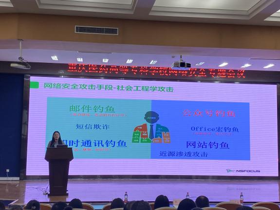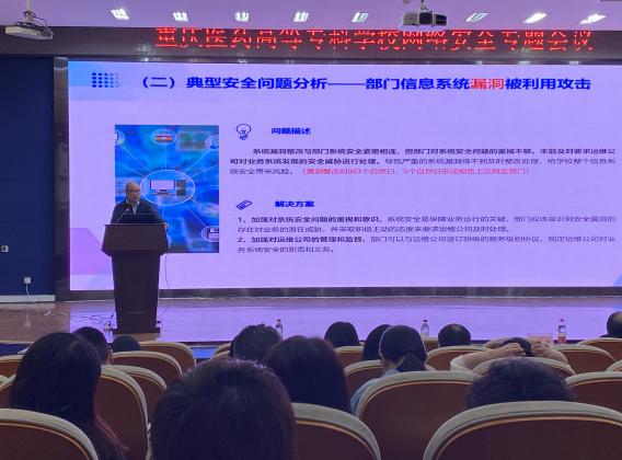 10月9日,学校举行了网络安全专题会议。校领导、各部门党政负责人、全校副科级以上领导干部、各院(部)、处(室)重点岗位人员出席本次会议。本次专题会旨在传达落实市教委对高校网络安全相关工作部署要求,提高全校师生网络安全意识。会议由组宣部部长雷道海主持,他介绍了会议的流程,并邀请了资深安全顾问冯婷进行专题讲座。