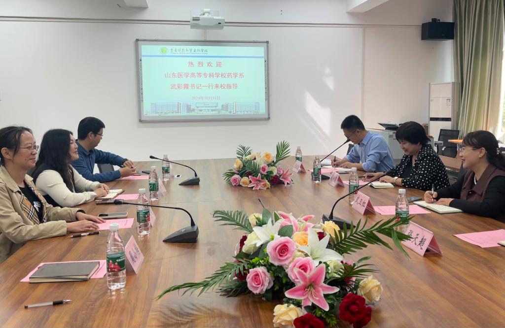 10月16日上午,山东医学高等专科学校药学系党总支书记武彩霞、武卫红等一行4人到学校考察交流。我校药学院(中药学院)在家党政领导热情接待了来宾。