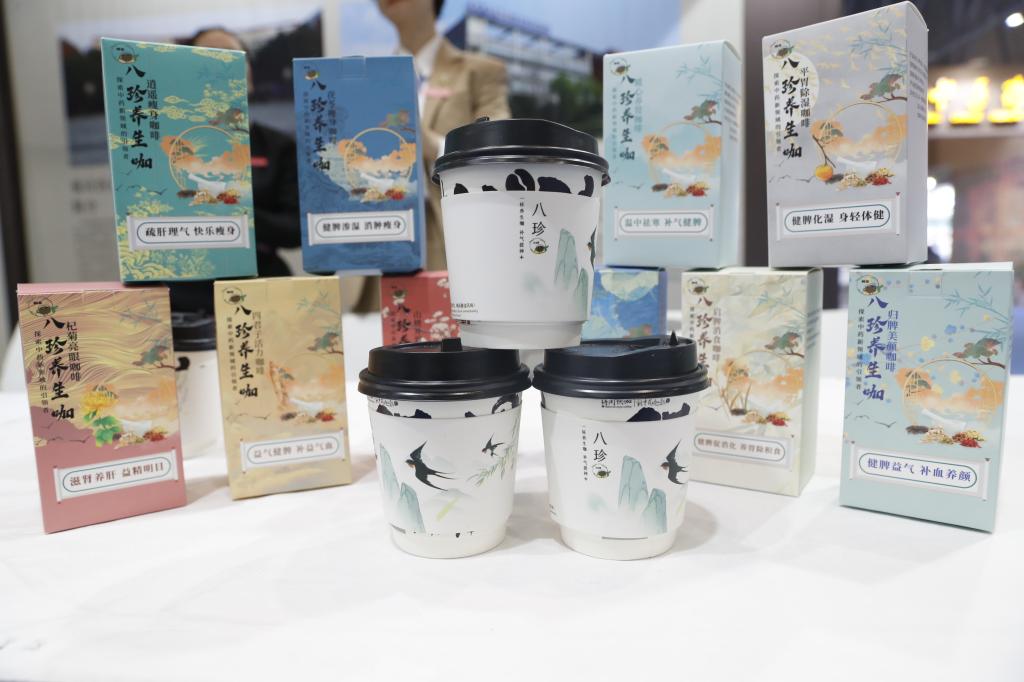 我校在此次博览会上展示了多项中医药研究成果和创新项目。其中,由我校学生在老师的指导下完成的八珍养生咖饮品备受瞩目,这是一项大学生创新创意项目。这款饮品将咖啡与中药进行融合,不仅口感独特,还兼具养生功效,受到了众多市民的喜爱和品尝。展台前人头攒动,市民们纷纷询问并品尝这款创意饮品,对其赞不绝口。在我校展区,市民朋友还可以体验中药香囊和中药足浴包的制作和使用,科普传统中医疗法等活动。