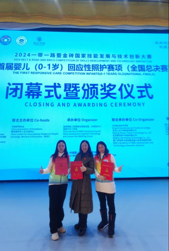 11月28日至12月1日,2024一带一路暨金砖国家技能发展与技术创新大赛首届婴儿(0-1岁)回应性照护赛项(全国总决赛)在兴安职业技术学院举行。来自全国各个市的305支优秀选手报名,其中,中职组61支队伍、高校组144支队伍、教师组的100支队伍。