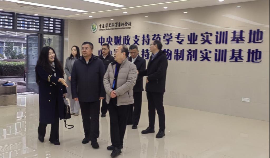 12月18日,重庆市巴南区政府副区长杨昆、重庆国际生物城党委副书记兼总经理任良平、重庆国际生物城党委委员兼纪委书记陈春梅等人莅临我校调研产教融合工作,对教育实训基地进行了视察。学校党委书记刘永生、副校长彭坤、药学院(中药学院)负责人及相关工作人员陪同参观,并就生物医药产业与教育发展进行了深入的交流。