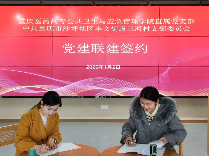 在三河村党群服务中心,公共卫生与应急管理学院直属党支部与三河村支部委员会签署党建联建项目协议书。双方将依托党建共建平台,开启全方位、深层次合作,整合高校资源与乡村需求,共同探索乡村治理新路径。