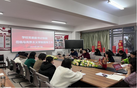 为深入学习贯彻落实党的二十届三中全会精神和习近平总书记对学校思政课建设作出的重要指示精神,切实推动思政课建设,1月17日上午,学校党委副书记张新深入马克思主义学院指导工作。马克思主义学院党总支副书记刘浩天主持会议,全体思政课教师参会。