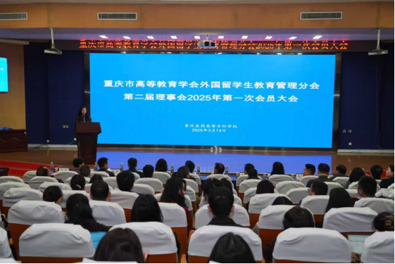 3月14日上午,重庆市高等教育学会外国留学生教育管理分会第二届理事会2025年第一次会员大会在我校图书馆六楼学术报告厅隆重召开,重庆市高教学会副会长黄腾蛟、市外办涉外处处长梁志刚、市公安局出入境管理局副局长罗春兰、市教委国际合作与交流处副处长江燕出席会议并讲话。会议由分会副理事长、重庆医科大学国际合作与交流处/国际教育学院处长王羽主持,来自重庆市各高校的会员代表齐聚一堂,共同总结2024年工作成果,展望未来发展。