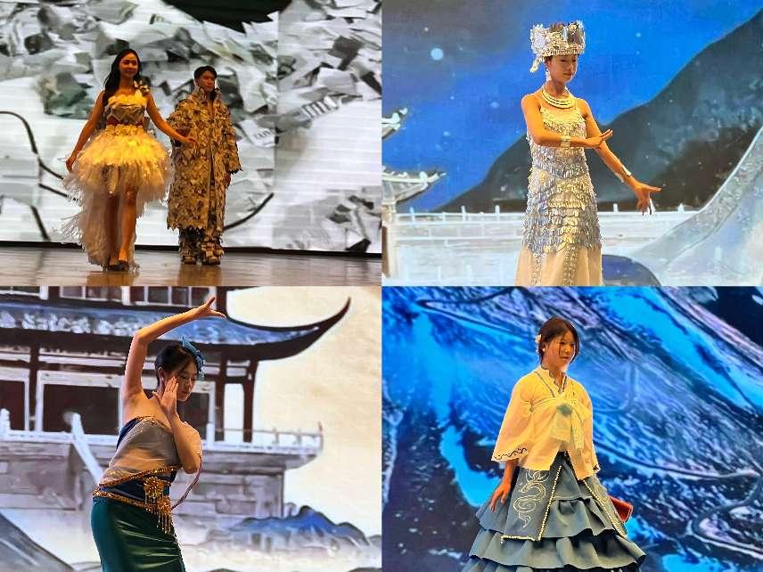 主会场聚焦专业服饰礼仪秀与环保时装秀两大主题赛事。在专业服饰礼仪秀环节,临床学院、护理学院以职业装束为载体,通过规范化操作演示展现医者专业风范;中医学院创新融合太极招式与白大褂元素,生动诠释传统医学文化精髓。环保时装秀板块亮点纷呈,各院部巧妙运用废弃物改造出时尚单品,将再生报纸编织成环保时装,利用回收垃圾袋重构飘逸裙摆,以废旧布料再造霓裳羽衣。活动尾声,一场庄严的授帽仪式将现场氛围推向高潮,护理前辈为学子戴上象征南丁格尔精神的燕尾帽,烛光传递间完成护理精神的世纪传承。护理学院合唱团献唱《我们不怕》,用歌声诠释新时代医者的使命担当。
