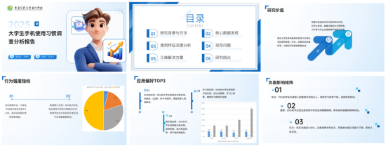 本课程以提升学生AI应用能力为目标,围绕学生在学习、生活和未来工作场景下的实际需求,设计了AI+办公自动化和AI+创作两方面内容。一是AI+办公自动化,模拟企业级办公场景,指导学生完成五千字以上的《大学生手机使用习惯调查分析报告》项目,培养学生熟练掌握AI文字生成与排版、AI数据分析与可视化、AI演示文稿生成与优化等技能。二是AI+创作,围绕学生真实生活场景,指导学生完成AI吉祥物设计、海报设计、LOGO设计、人物换装、老照片修复、短视频制作、数字人播报等实践项目,培养学生熟练掌握AI在图像生成、视频生成、音乐生成等领域的应用技能。