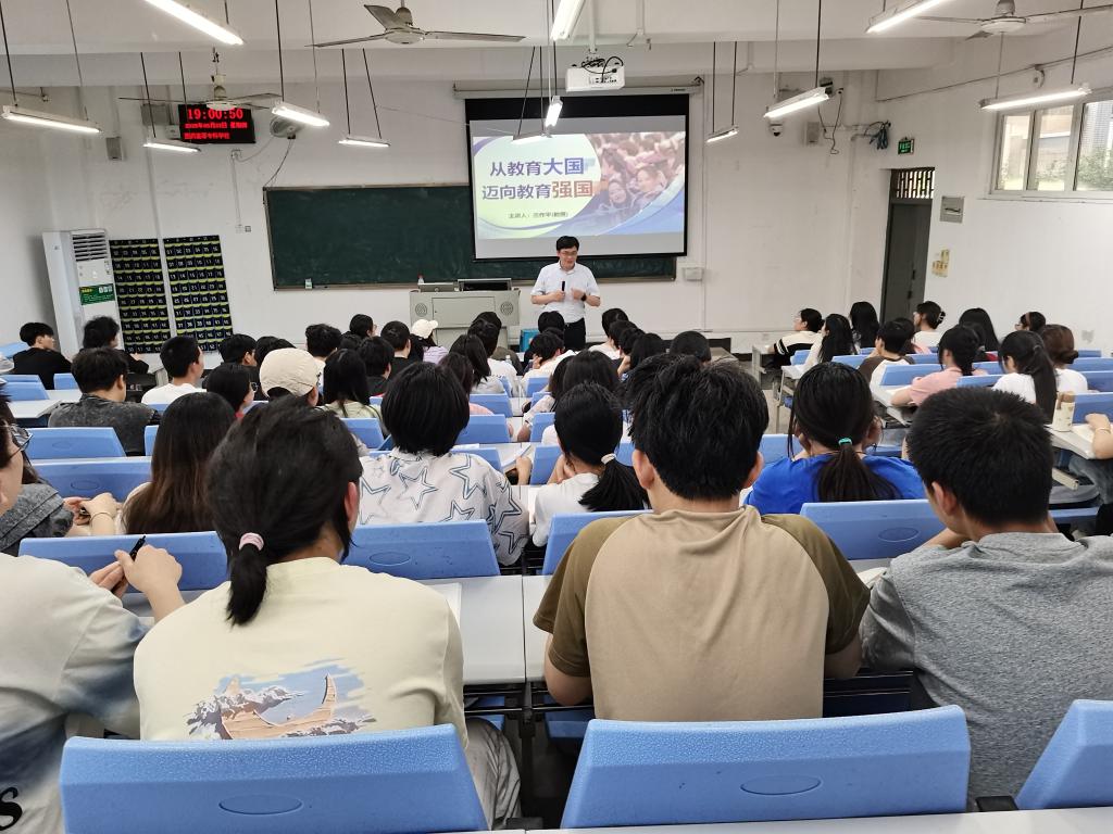 为深入贯彻落实《新时代学校思想政治理论课改革创新实施方案》文件精神,5月22日晚上,学校副校长兰作平在教学楼2207以《从教育大国迈向教育强国》为题,为2024级临床医学1-2班的同学们讲授了一堂精彩的思政课。