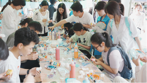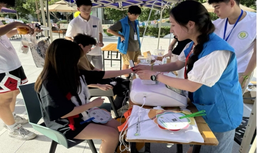 活动现场设置心理工作成果展示区、心理健康知识宣传区、互动游戏区、心灵探索区四大板块,全方位覆盖心理教育需求。在互动游戏区,学校心理中心和各学院心理辅导站围绕“24项积极心理品质”精心策划特色互动项目,通过趣味挑战与艺术疗愈深度融合,打造了一场全员参与的“心理嘉年华”。同学们手持画笔为石膏娃娃注入色彩,在“石膏彩绘”中完成一场无声的心灵对话。“情绪交换盲盒”吸引众多师生驻足,匿名写下困扰并折成千纸鹤,换取陌生人的暖心鼓励,让善意在指尖悄然流转。直径2米的“心愿球”汇聚数百个心愿与希望。现场更有八段锦展演、跨文化手势互动等多元活动,诠释“积极、友善、希望”的积极品质。