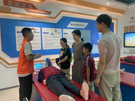 活动现场设置了心理服务中心、健康科普体验馆、多功能演播厅等主题场馆,依托“5G+AR/VR”等前沿技术,打造沉浸式科普体验。中医文化体验区内,专业学生现场演示艾灸推拿技巧,带领市民感受传统医学的独特魅力;急救技能培训区通过人体模型实操,详细讲解心肺复苏、海姆立克急救法等实用技能,提升公众应急能力;AR/VR体验区借助虚拟场景模拟火灾逃生、情绪疏导等内容,帮助参与者掌握安全应对与心理调适技巧。此外,分娩疼痛体验、健康咨询互动、有奖问答等环节也备受青睐,现场气氛热烈。