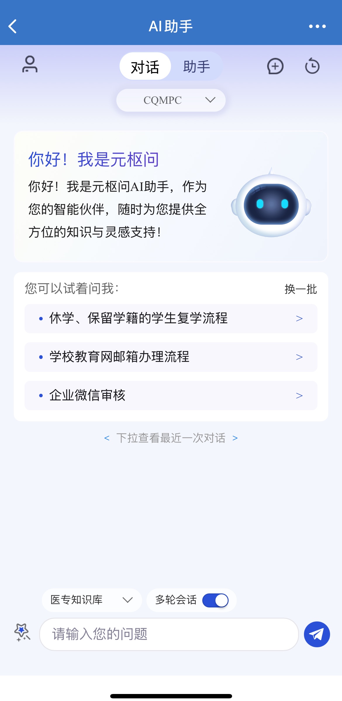 为加速推动人工智能技术赋能高质量发展,重庆医高专以数字化转型为引领,紧跟“AI+教育”融合发展的趋势,成功部署本地化DeepSeek-R1大模型,AI助手“元枢问”上线并深受师生喜爱,办事体验感显著提高。