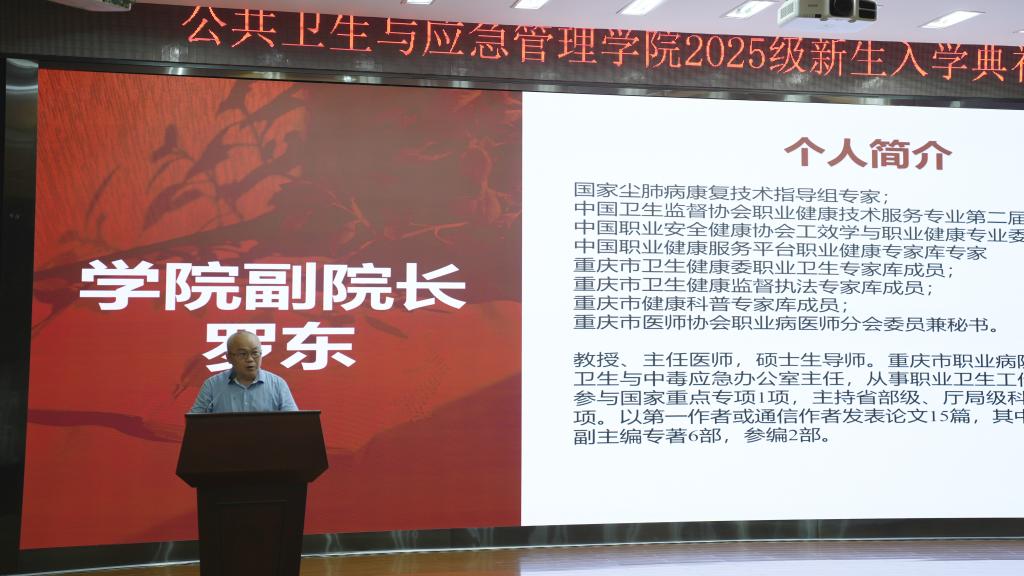学院副院长、学校附一院职业卫生与中毒应急办公室主任罗东以“青春‘三自’”为主题,勉励同学们在专业学习的道路上要自信、自力、自强,一要坚定专业自信,树立远大理想,“心有所信,方能行远”;二要坚持自力更生,锤炼过硬本领,就是要“自能成羽翼,何必仰云梯”,在求知的激流中奋楫争先,锤炼过硬本领;三要矢志自强不息,追求卓越人生,不断提升自己的能力和水平,为自己、为社会创造更加美好的未来。