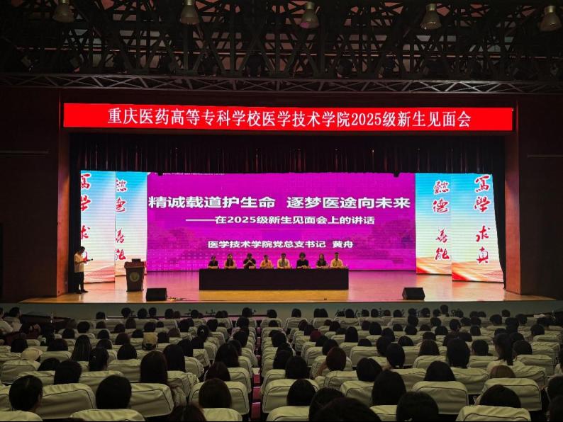 为使新生更好地适应大学生活,9月14日晚,医学技术学院在大学城校区学生活动中心隆重举行2025级新生见面会。学院党政领导班子成员、各专业负责人、骨干教师、辅导员及全体新生参加了大会。