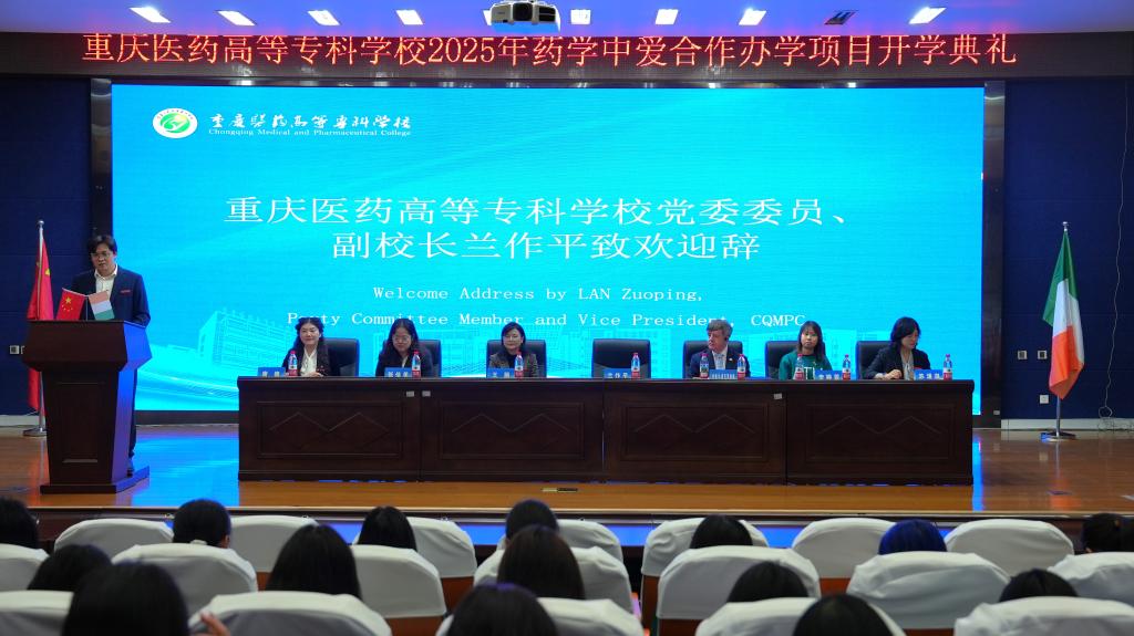 兰作平副校长对大西洋理工大学嘉宾的来访表示热烈欢迎。他在致辞中肯定了三年来两校合作的成果,指出本项目深度融合了中爱优质教育资源,致力于培养具备专业技能、国际视野和跨文化沟通能力的高素质药学人才,期待新生夯实专业基础,拓展视野,成为中爱医药交流的桥梁。