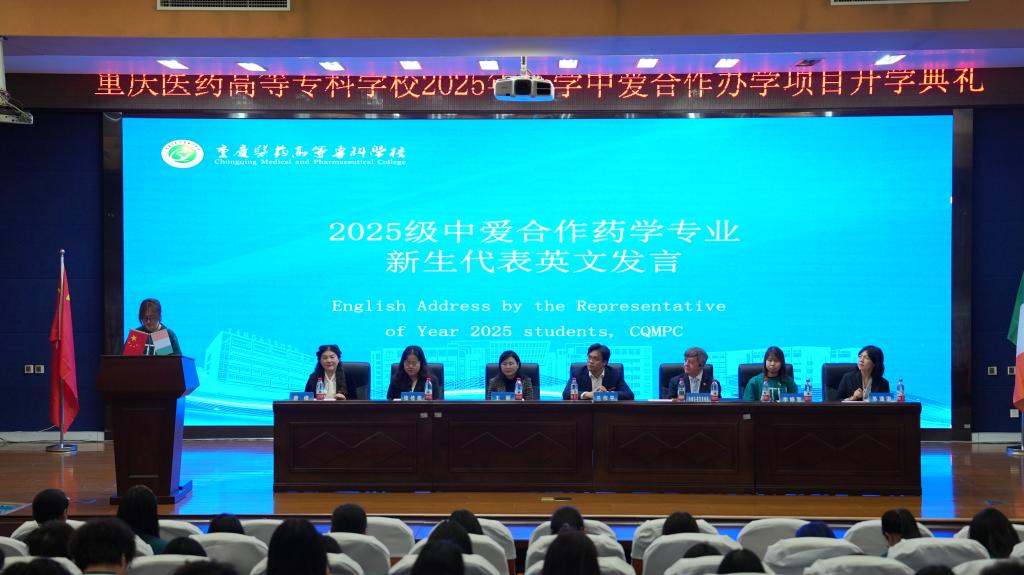 典礼上,来自2025级的杜静瑜作为新生代表进行发言,她表达了自己选择药学专业的初心和对国际化课程的期待,并表示,同学们将勇于迎接语言学习和跨文化沟通的挑战,努力成为联通中外的药学人才,为全球健康事业发展贡献青春力量。随后,爱尔兰大西洋理工大学国际留学生李婷萱就学位衔接路径、申请流程与校园生活作了专题演示,为学生学业发展与出国规划提供指引。