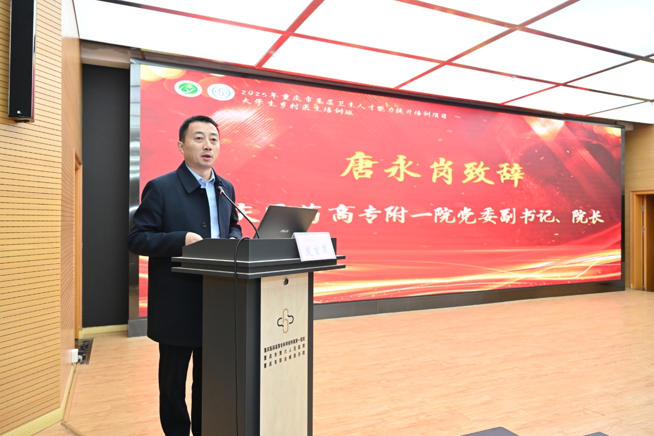 11月10日,由重庆市卫生健康委主办,澳门电子pg游戏官网承办的2025年重庆市基层卫生人才能力提升培训项目——首期大学生乡村医生培训班在澳门电子pg游戏官网附属第一医院开班。学校继续教育学院院长陈立书主持开班仪式。