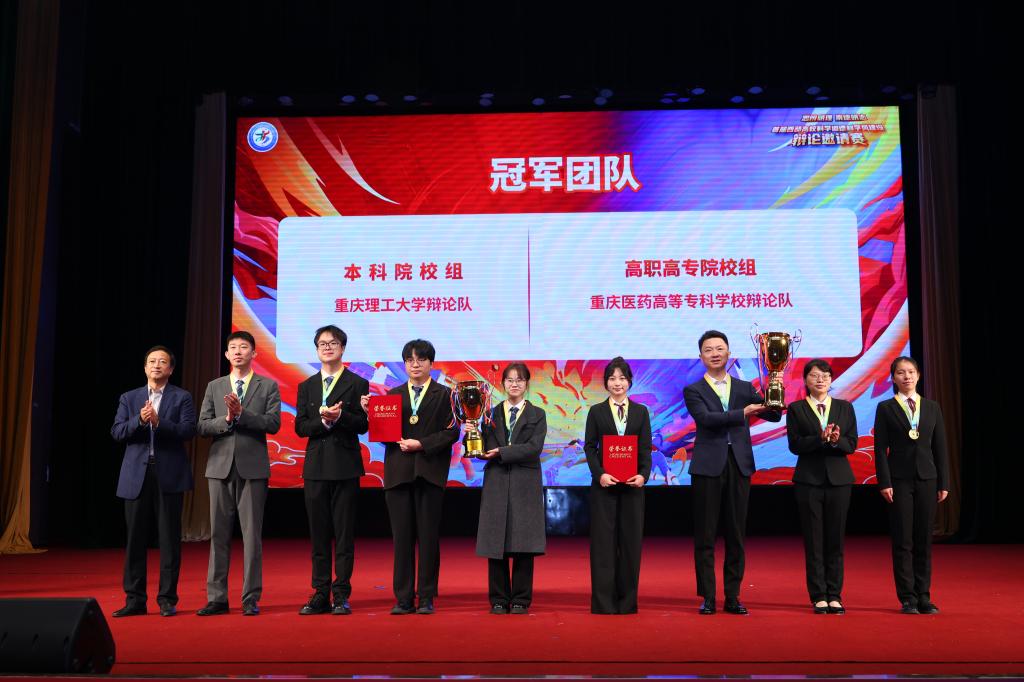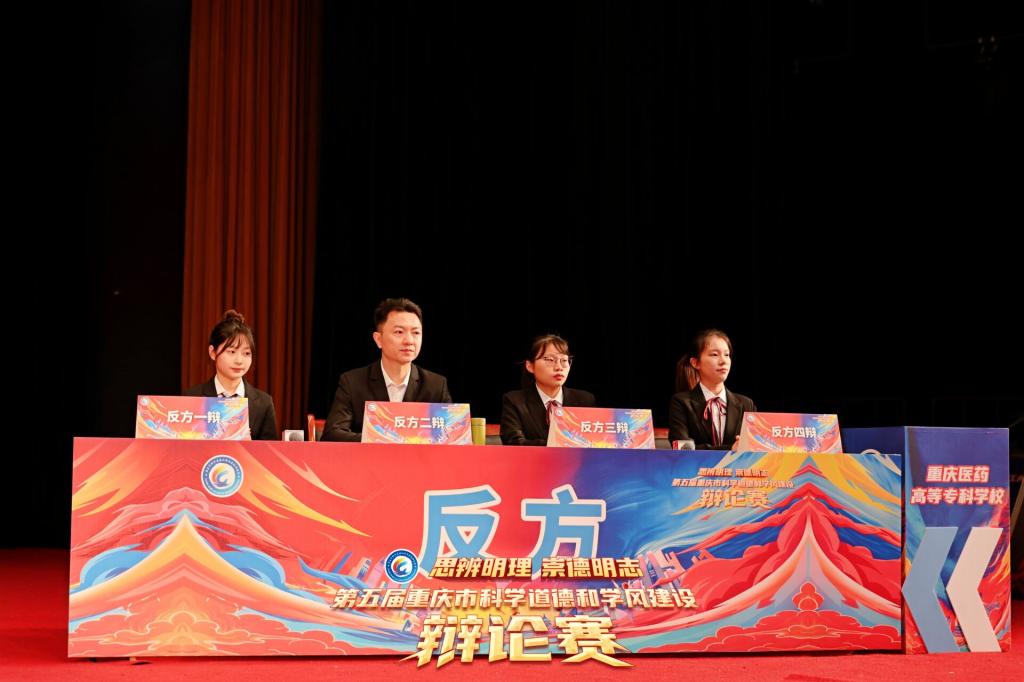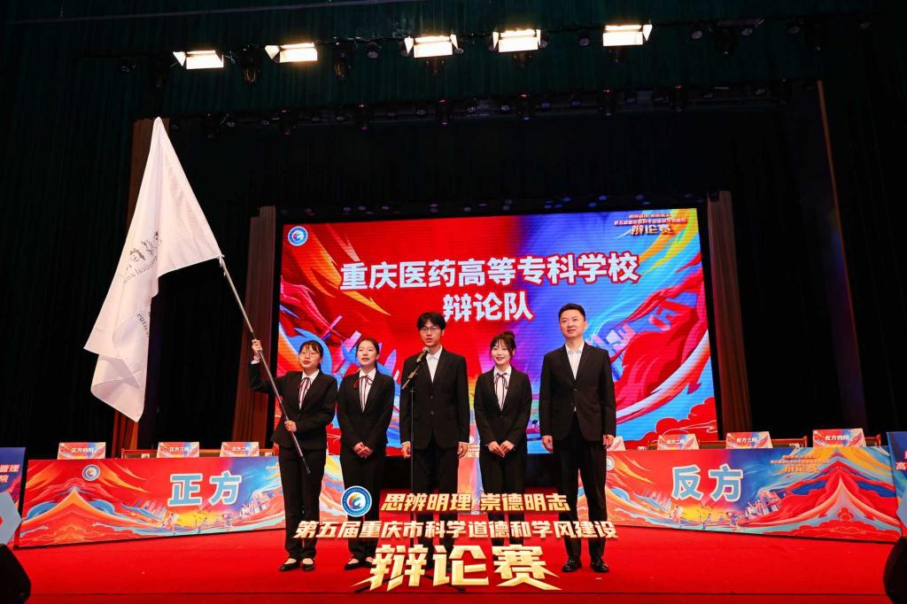 11月6日,由市科协、市教委、市科技局、团市委、市社科联共同主办的第五届重庆市科学道德和学风建设辩论赛决赛在重庆理工大学举行。我市48所高校队伍参加了本次赛事。经小组赛、复赛及半决赛的角逐,我校由科技产业发展中心组织,马克思主义学院教师罗唤,药学院(中药学院)学生张宏莉、叶濠、曹冉冉,中医学院学生刘玲希组成的辩论队脱颖而出,闯入本次决赛。我校辩论队凭借扎实的专业积累、高效的协作配合与出色的临场应变,在与重庆城市管理职业学院的角逐中力克强敌、稳健前行,最终以4比1的优势成功卫冕。这是团队连续三年在该项赛事中摘得高职组冠军,圆满实现 “三连冠” 殊荣,用实力彰显了我校师生的思辨风采与团队凝聚力。