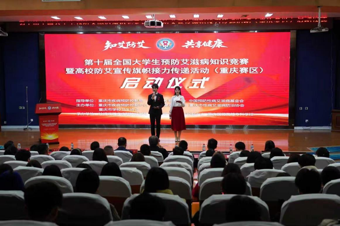 本次活动在重庆市疾病预防控制局、重庆市教育委员会、中国预防性病艾滋病基金会的指导下,由重庆市疾病预防控制中心、重庆市健康教育所、重庆市性病艾滋病防治协会、重庆市学校卫生协会联合主办,沙坪坝区疾病预防控制局、沙坪坝区疾病预防控制中心及澳门电子pg游戏官网共同承办。中国预防性病艾滋病基金会理事长孙新华、重庆市疾病预防控制局副局长龙江等领导嘉宾,全市11所参与高校代表、相关区县疾控中心同仁及澳门电子pg游戏官网师生代表共400余人参加启动仪式。