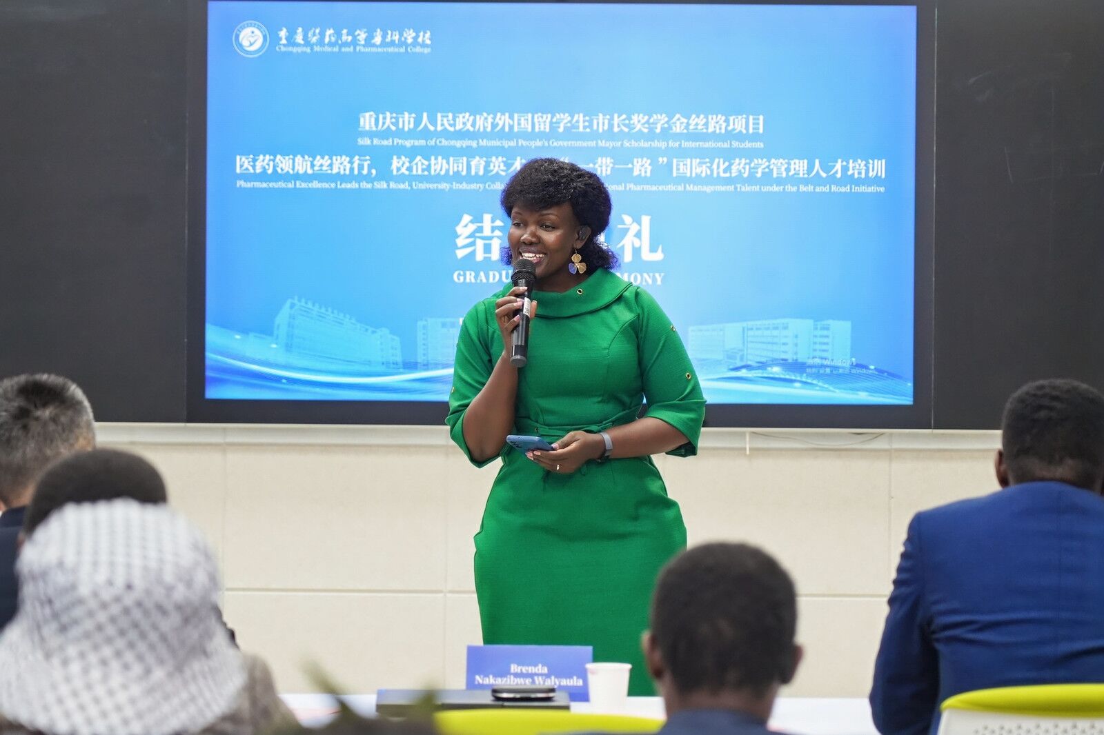 2025年11月21日,重庆市人民政府外国留学生市长奖学金丝路项目——“医药领航丝路行,校企协同育英才:‘一带一路’国际化药学管理人才培训”结业典礼在澳门电子pg游戏官网隆重举行。学校党委委员、副校长彭坤,学校教务处处长王丽、药学院(中药学院)副院长苏湲淇、学校授课教师代表以及乌干达代表团全体学员共同出席典礼。