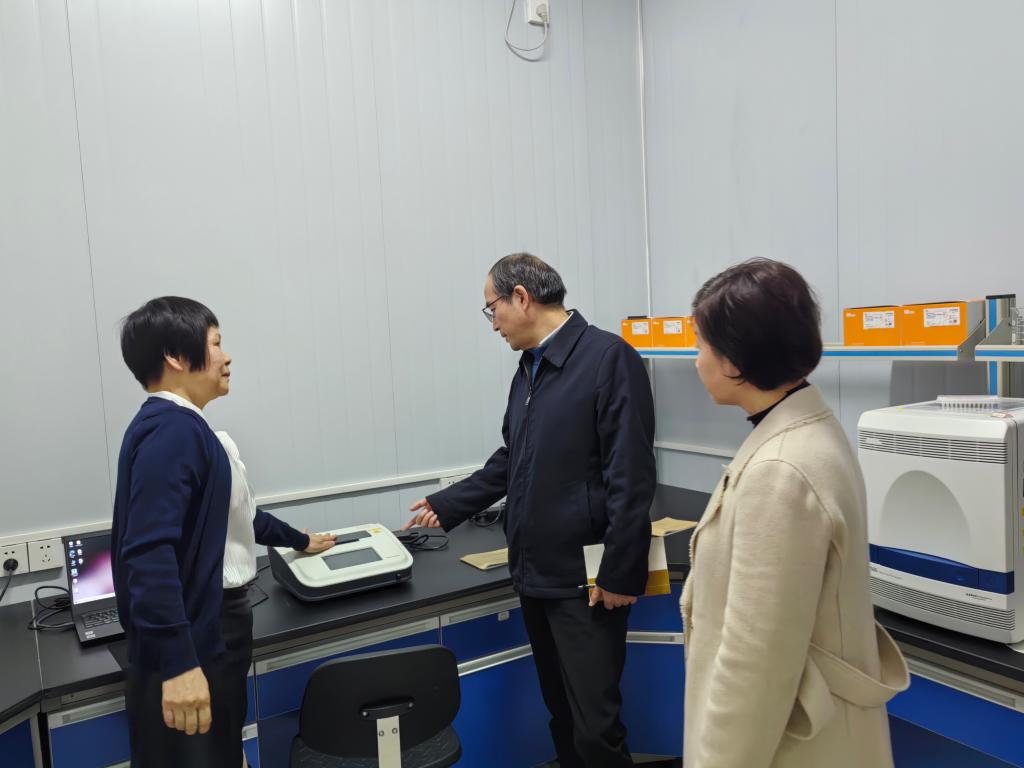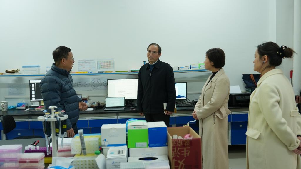 刘永生书记一行来到体外核酸检测试剂研究室,张拥军、陈爱平围绕自身科研项目向校领导做了汇报并进行了深入交流。他们介绍了实验室正在进行的虫媒病毒核酸检测参比品系列研发、毒蘑菇分子鉴定体系建立及应用、霍乱弧菌核酸快速检测试剂研发等科研项目,并就相关领域的技术突破、应用前景、转化落地等方面进行了详细的介绍。