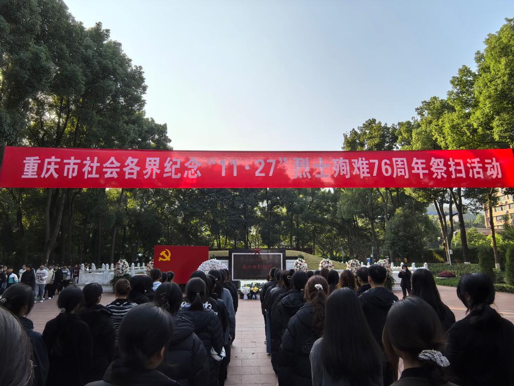 学员们走进歌乐山革命烈士纪念馆,在讲解员的引导下,驻足观看珍贵文物与历史照片,聆听烈士们舍生取义的革命故事,回溯革命年代的烽火岁月,深刻感悟“红岩精神”的信仰力量。在烈士陵园内,学员们庄严肃立,在烈士墓前整齐列队,默哀致敬,随后重温入团誓词,以“为共产主义事业而奋斗”的誓言,呼应英烈的精神感召。学员们手持白菊,绕墓缓步而行,逐一将鲜花敬献于墓前,以肃静的仪式传递对革命先烈的深切缅怀与崇高敬意。
