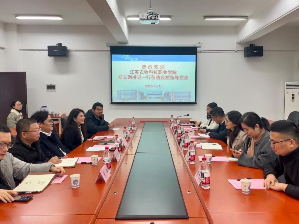 12月10日上午,江苏农牧科技职业学院党委副书记郑义一行6人来我校调研交流。澳门电子pg游戏官网党委委员、副校长兰作平,药学院(中药学院)相关同志参与交流活动。