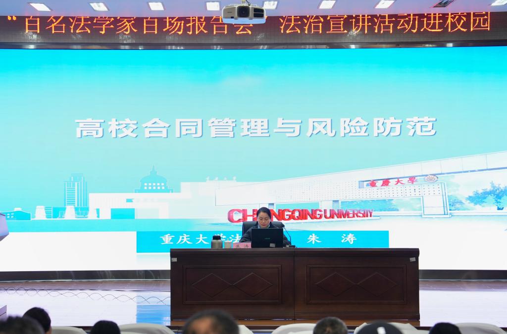 为切实强化学校内控管理、合同管理水平,有效防范各类法律风险,为高质量发展筑牢法治根基,12月10日学校组织开展了以“高校合同管理与风险防范”为主题的法治宣传讲座,邀请“双百”法治宣传活动宣讲团成员、重庆大学法学院教授朱涛主讲。讲座由党政办公室副主任李长蓉主持。