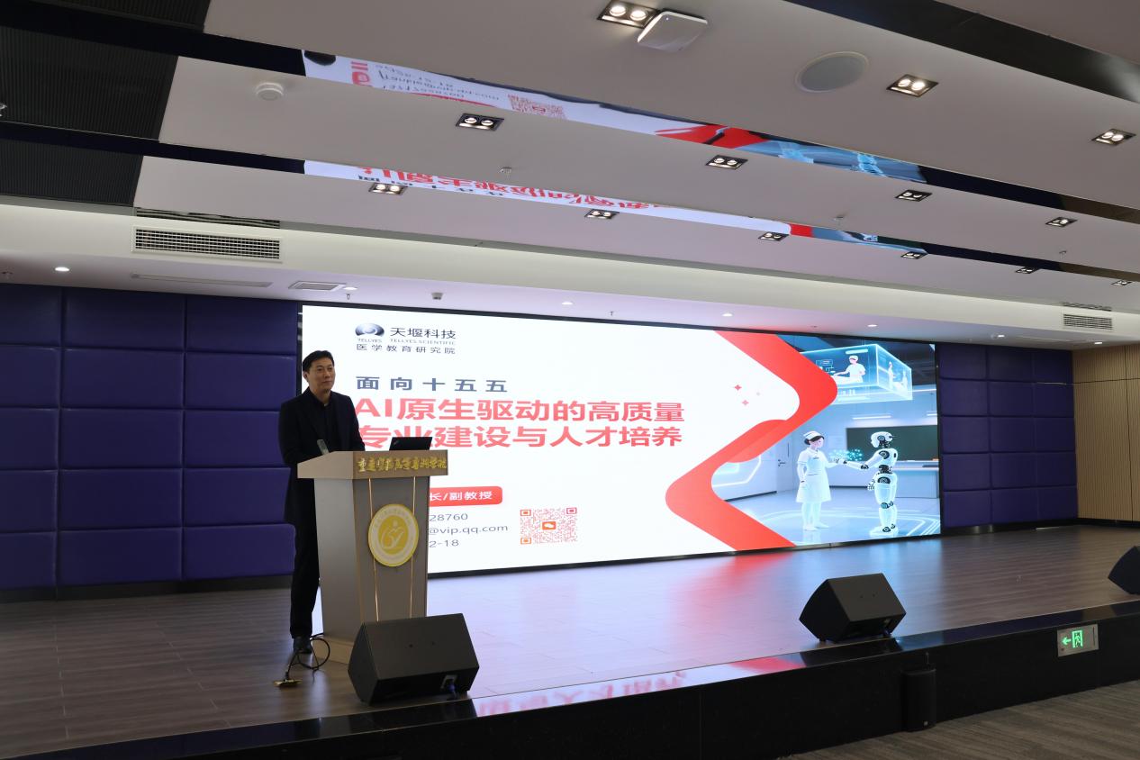 李智高教授作了《AI原生驱动的临床医学专业高质量建设思考》专题分享,并结合最新发布的天堰AI医学教育基座展示了“教-学-训-考-评-管”AI+医教全流程闭环生态。