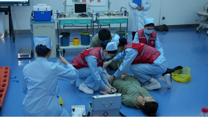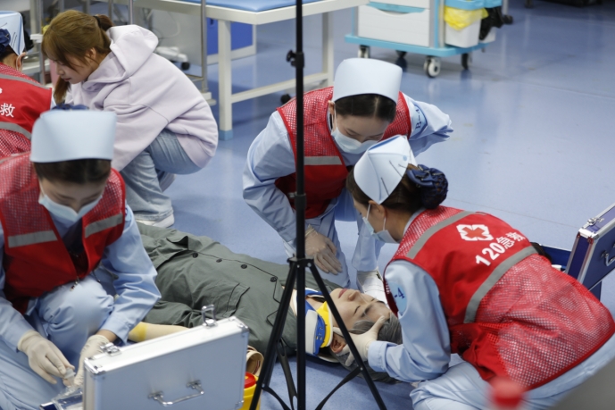 比赛中,我校参赛队伍在赛项中沉着应战、操作规范、沟通流畅,精准展示了心肺复苏、静脉输液,动脉采血等核心专业技能,展现了融合急救及抢救的综合临床护理场景,以温暖的人文关怀,以患者为中心的服务理念,扎实的基本功与默契的团队配合,生动诠释了现代护理工作的专业内涵与人文温度。