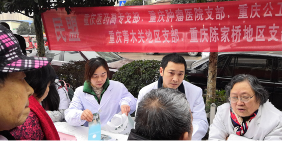 1月12日上午九点,民盟澳门电子pg游戏官网支部在沙区盟区委、学校组宣部的支持和各支部委员的组织下,携手重庆肿瘤医院支部、重庆公卫中心支部、重庆青木关支部、重庆陈家桥支部在九龙坡区金凤镇开展“服务百姓健康行动”。