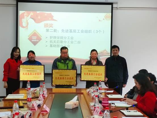 会上,工会常务副主席苏承福通报了2018年度创建职工之家验收结果暨开展2017-2018年度工会工作评先评优的情况,对命名的10个校级职工小家进行了授牌,对在创建中涌现出的3个先进基层分工会组织、10名优秀工会干部、32名工会积极分子进行了表彰。