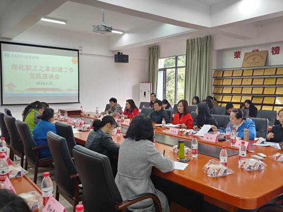 为加强各基层工会组织在创建职工之家工作上的学习交流,不断提高创建水平和服务能力,3月28日下午,校工会在综合楼南楼315会议室召开2019年深化职工之家创建工作交流座谈会。校工会(教代会)委员会委员、各二级分工会主席及委员、以及获2017-2018年度表彰的优秀工会干部、工会积极分子60余人参加座谈会,学校党委副书记、工会主席黄萌出席会议并作重要讲话。
