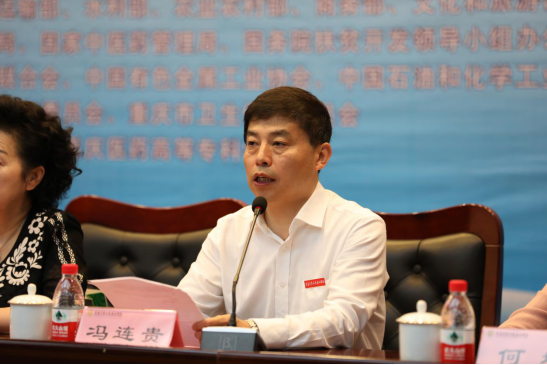 重庆市教育委员会高教处调研员闵权致辞。他指出,近两年来重庆市承办了全国职业院校技能技能大赛的两个赛项,体现了教育部对我市组织国赛的充分信任。全国职业院校技能大赛是集中展现职业教育改革发展工作成果与职业教育师生风采的大舞台,通过大赛,对深化职业教育教学改革,推动产教融合、校企合作,促进人才培养,扩大互动交流具有重大的意义。当前,重庆正按照习近平总书记对重庆“两地”“两高”的定位要求,紧扣“健康中国2030”“一带一路”等国家战略,积极构建具有重庆特色的现代职业教育体系,本次大赛在重庆举行,必将进一步促进重庆职业教育的改革与发展,增强重庆职业教育的影响力和吸引力,进一步营造“崇尚一技之长,不唯学历凭能力”的社会风尚,助推重庆成为高质量发展的内陆开放高地。他希望本次大赛的承办方,重庆医药高专能够充分发挥学校办学优势,精心准备、科学安排、强化服务,努力把本届大赛办成展示水平、安全有序、特色鲜明的技能大赛。