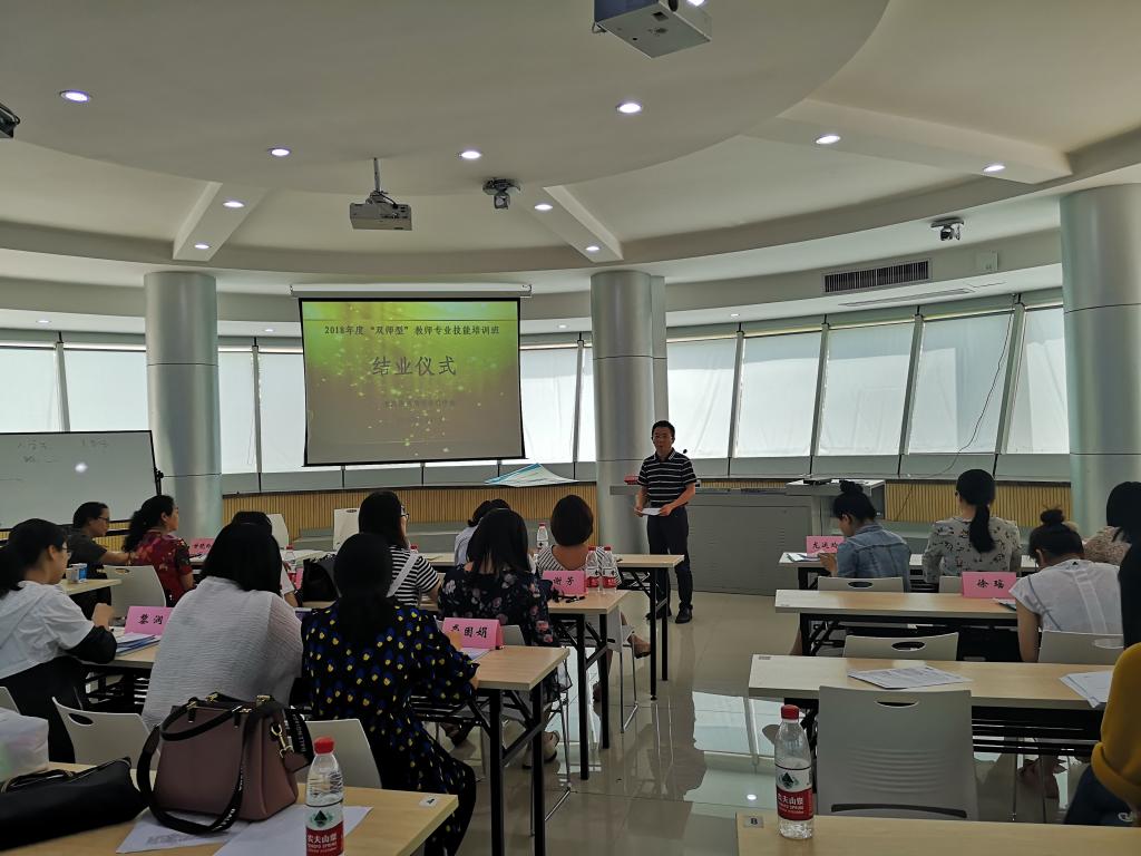 4月27日上午,“双师型”教师专业技能培训班(国家级培训)结业仪式在我校举行。学校副校长朱照静,学校督导办公室主任甘晓玲,护理学院副院长江领群及24名培训学员参加结业仪式。