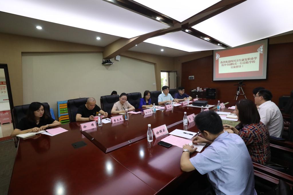 会上,教务处处长兰作平对我校校企合作及集团化办学情况作了简要介绍。申院长对我校校企合作、集团化办学给予了高度认可,同时介绍了四川卫生康复职业学院的基本情况和办学特色。双方从双高建设,产教融合、校企合作模式,专业群、骨干专业建设及诊改工作四个方面进行了深入交流,还就几个具体问题进行了进一步探讨。最后,申院长一行提出了加强与我校进一步交流合作的愿望。