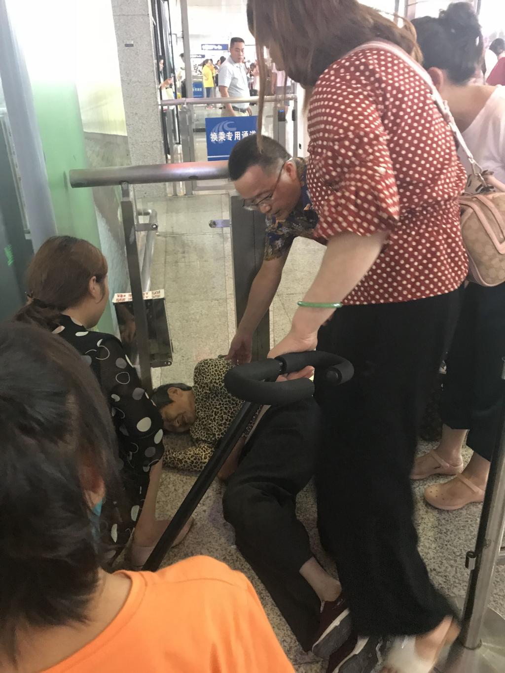 突然,大厅响起急切的求助广播:“14A进站口有一名乘客突然晕倒!请现场有从事医护工作的人员前往紧急救助!”听到广播后,服务队一行13人不约而同地快速起立,迅速赶往事发地点。一名80多岁高龄的老人正躺在地上,面色苍白、意识烦躁、呼吸急促、脉搏细速……两名教师立即跪地检查老人生命体征及外部损伤状况,快速判断老人为低血糖伴晕车症状。学生志愿者协助车站工作人员小心地将老人背至通风处,为老人喂服随身携带的葡萄糖水,同时缓解老人紧张情绪,指导老人有效呼吸。经过及时有效地专业救助,老人情况终趋稳定。老人家属十分感动,连番致谢,工作人员和乘客们纷纷为这支及时伸出援手的师生团队点赞。
