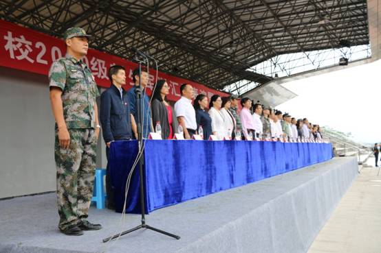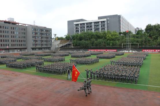 9月20日上午,2019级学生军训汇报表演暨开学典礼在学校风雨操场隆重举行。全体在家校领导,沙坪坝区武装部部长颜小平出席典礼,学校相关职能部门负责人、院部党政主要负责人、全体教官、教导员指导员、全体受训学生参加典礼。