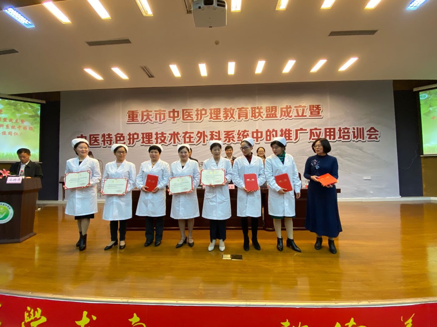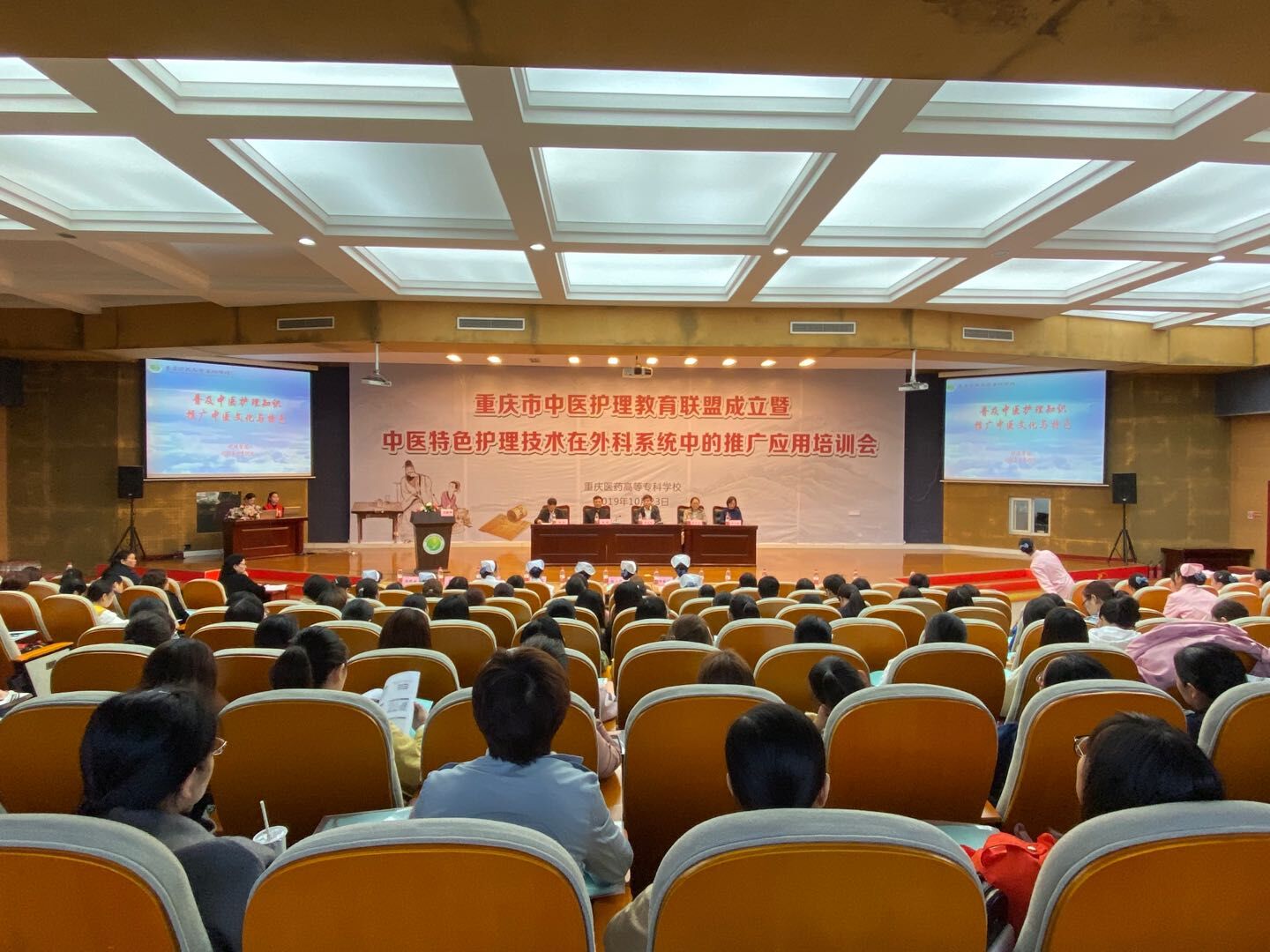 在重庆医药集团框架下,我校牵头组建中医护理教育联盟,拟在师资交流、人才培养、教学科研和教学基地建设等方面开展深度合作。10月23日,中医护理教育联盟成立暨中医特色护理技术在外科系统中的推广应用培训会议在图书馆6楼学术报告厅隆重举行。学校校长冯连贵、副书记黄萌、副校长唐全及护理学院全体领导班子成员和部分教师,24家联盟单位及200多名医护人员参会。