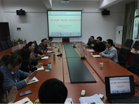 由重庆市教委牵头,会同市人力社保局等有关部门,根据职业院校专业设置情况和办学特色,企业主营范围、发展定位等,组织学校和企业结成“双千双师”交流对子,根据《重庆市教育委员会等4部门关于推荐双千双师交流计划第五批互聘人选的通知》(渝教人函〔2019〕64号)精神,为推进第五批人员交流工作,学校于近日在行政楼315会议室召开了“双千双师”第五批人员交流启动会。重庆华森制药股份有限公司、重庆普门创生物技术有限公司、重庆药友制药有限公司和学校交流教师况兴林、张天竹出席了此次会议。