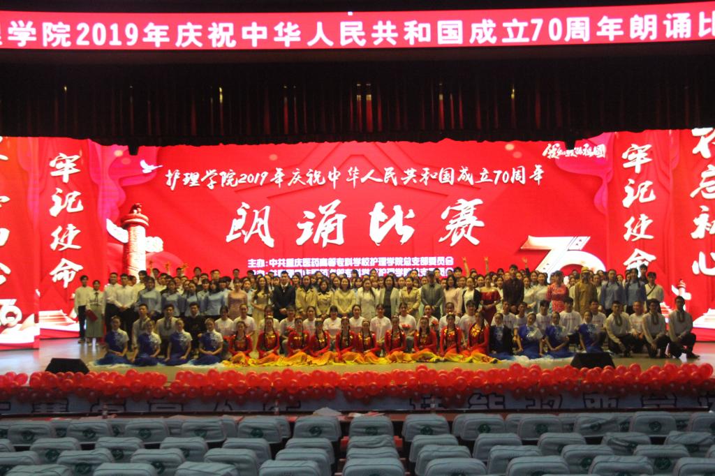为庆祝新中国成立70周年,澳门电子pg游戏官网护理学院于10月30日晚在食堂三楼学生活动中心举办庆祝中华人民共和国成立70周年朗诵比赛。护理学院班子成员及相关老师参加活动。
