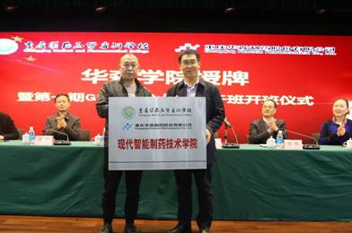 学校党委书记吴海峰和华森制药股份有限公司生产副总经理周邦建揭牌“现代智能制药技术学院”