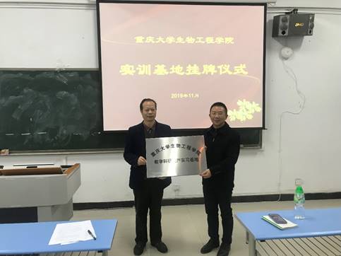 11月20日,重庆大学生物工程学院书记王贵学、王建华教授带领其教师和40余名学生,来我校进行教学科研生产实习基地挂牌仪式,我校副校长朱照静、科技产业部部长杨治国等参与此次仪式。