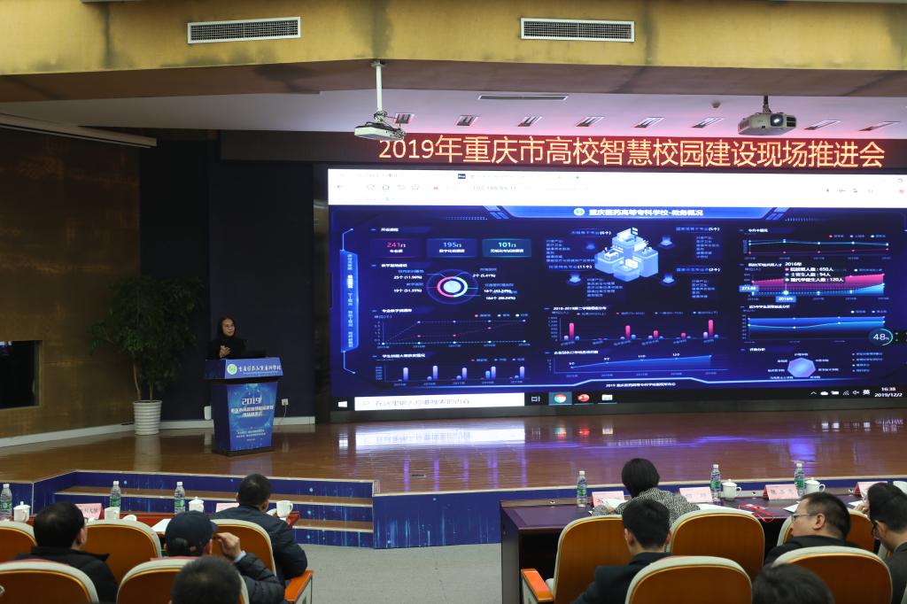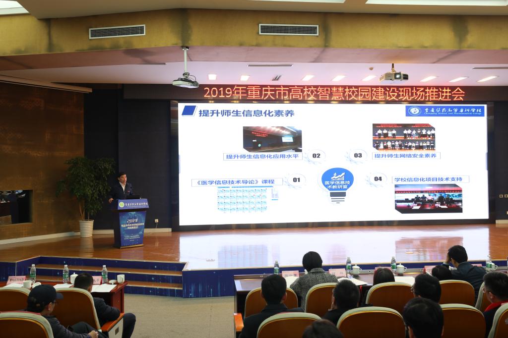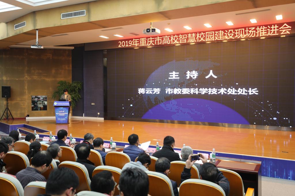 12月2日下午,重庆市高校智慧校园建设现场推进会在澳门电子pg游戏官网召开,来自全市65所高校分管信息化的校领导、信息中心主任、高校智慧校园建设专家等共150余人参会。市委教育工委专职副书记覃正杰、科技处处长蒋云芳,市卫生健康委科教处副处长丁国富,澳门电子pg游戏官网党委书记吴海峰、校长冯连贵、副校长何坪等领导出席会议。