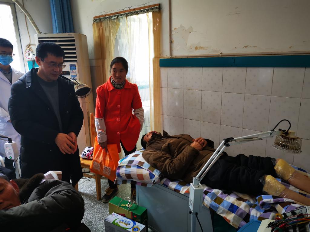 吴海峰书记到金溪镇卫生院看望了因严重类风湿疾病致残的贫困户王绍举,关心他的治疗进度、享受的医疗政策等情况。随后,到清水村调研了由学校派出的驻村第一书记李小兵牵头创建的“爱心超市”项目和入户走访贫困户。在走访过程中,吴海峰书记深切关心贫困户“两不愁三保障”突出问题和饮水安全是否有保障,并为他们送去了油米、牛奶等慰问品,鼓励他们在党的好政策下,要坚定信心,积极发展生产,乐观面对生活。吴海峰书记表示,学校将一如既往的按照市卫健委扶贫集团的要求,全力支持“扶贫三金”(金溪农场、金溪被服、金溪护工)项目的发展,不断壮大村集体经济,一定让贫困群众共享改革开放发展和脱贫攻坚的红利,早日实现脱贫致富梦。