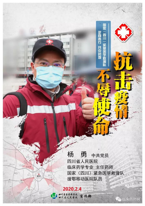 杨勇是我校的优秀校友,现为四川省人民医院主任药师、电子科技大学医学院临床药学教研组主任。作为呼吸感染专业的临床药师,当杨勇得知武汉抗击疫情一线急需经验丰富的临床药师时,便毅然写下请战书,成为了国家紧急医学救援队的一员。当天晚上,他在日记里写到:“当收到援鄂的消息,让我感到的不是害怕,而是一种责任,是武汉人民的期望,是祖国的召唤。”