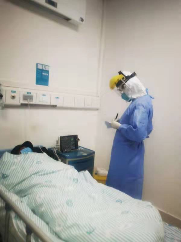 1月28日的夜晚,时针已走过21时,感染科医生休息室里,一份盒饭早已冰冷。走出隔离病区,小心翼翼脱下三层隔离服(最里面是白色的工作服,最外的是蓝色隔离服,中间的是白色防护服),取下护目镜,坐到盒饭跟前的杨航,已8个多小时滴水未进。8个多小时前,一名发热患者入院,在接到上级医师指示后,杨航随之进入隔离病区,开始为名患者进行诊疗。患者自述症状、是否出现新的症状、原有症状是否加重或减轻……杨航用纸笔一一记录,然后将记录张贴在隔离区的玻璃墙上,由半隔离区的同事用手机拍照,再一一录入系统存档。隔离病区不允许带手机进入,医护人员之间会用对讲机或者医院提供的专用手机进行交流,但纸笔记录依然是最常用的办法。杨航又用对讲机,与隔离区外的同事商讨救治方案,并着手对患者进行初步治疗。时间一分一秒地流逝,三层隔离服里,杨航的汗水湿透全身。没有时间休息,安顿好新转入的患者,杨航开始了例行查房。查房的内容,同样用纸笔记录,再经半隔离区的同事拍照留存。