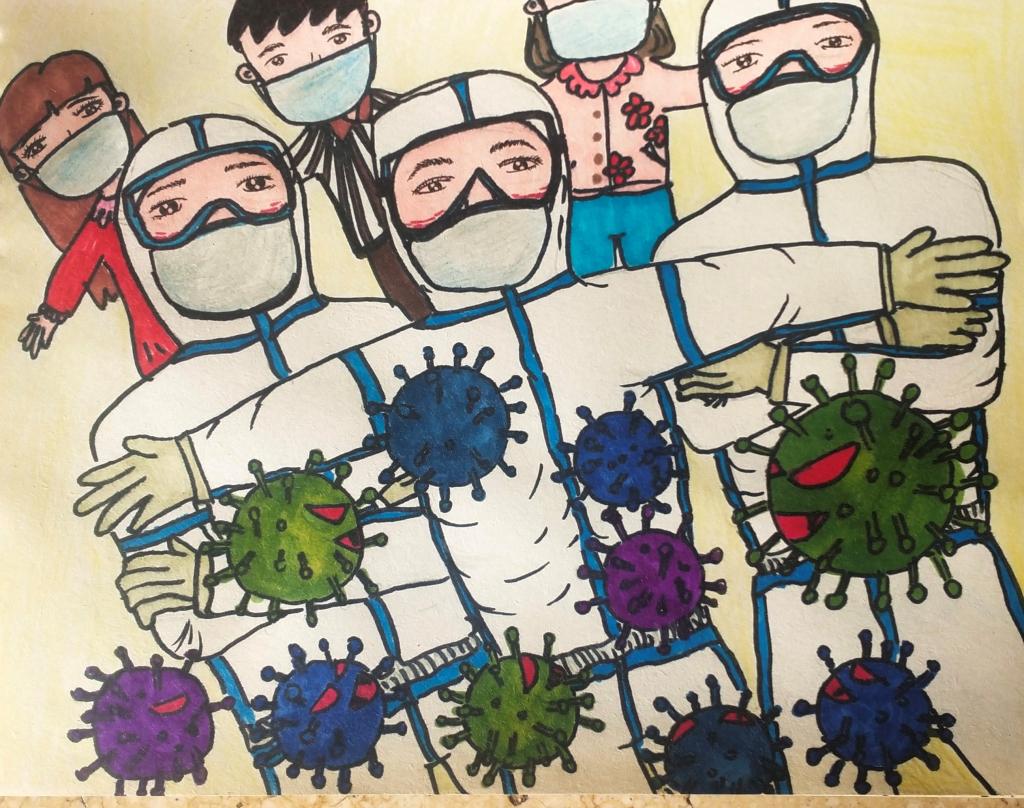 《八方支援齐心抗疫》《白衣战士》《坚守》……一幅幅生动的画作表达着学子们对冲锋在前、无私奉献的“白衣逆行者”的敬意,也传递着学子们对国家一定能打赢这场疫情防控阻击战的坚定信心。