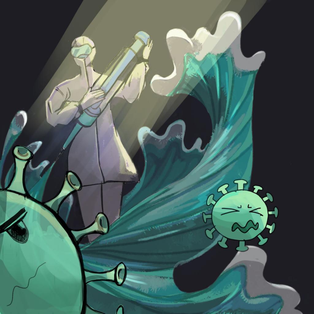 (在疫情肆虐的时候,仍然有许多人坚守到工作岗位,他们是工人、志愿者、医生、护士等,他们戴着口罩努力前行,他们是全世界的英雄,拼尽全力守护着我们。他们驱赶病毒与灰暗,给我们带来无限的希望。)