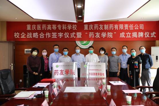 为进一步贯彻落实国家科教兴国战略和国家职业教育改革实施方案,学校持续拓展“校企院合作、集团化办学”道路,与国内知名、区域领先的重庆药友制药有限责任公司开展深度合作,成立“药友学院”,共同为医药行业培养复合型技术技能人才。