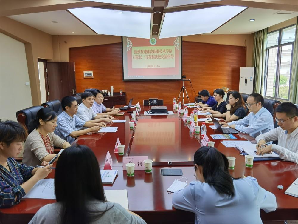 9月16日下午,雅安职业技术学院院长石燕一行5人来我校交流“双高”建设。座谈会于综合楼北楼609召开,学校党委书记吴海峰、校长冯连贵、教务处处长兰作平及院部双高负责人等参会。